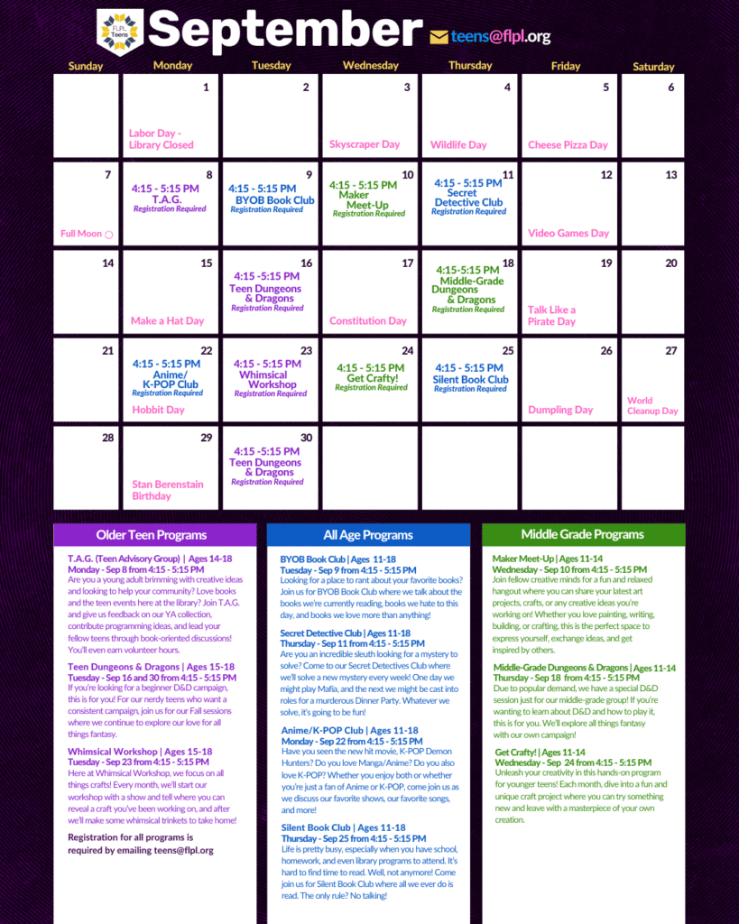 Calling all of our tech savvy teenagers! We'll learn how to bring ideas into the real world with 3D printing and electronics, make interactive art with coding and animation and